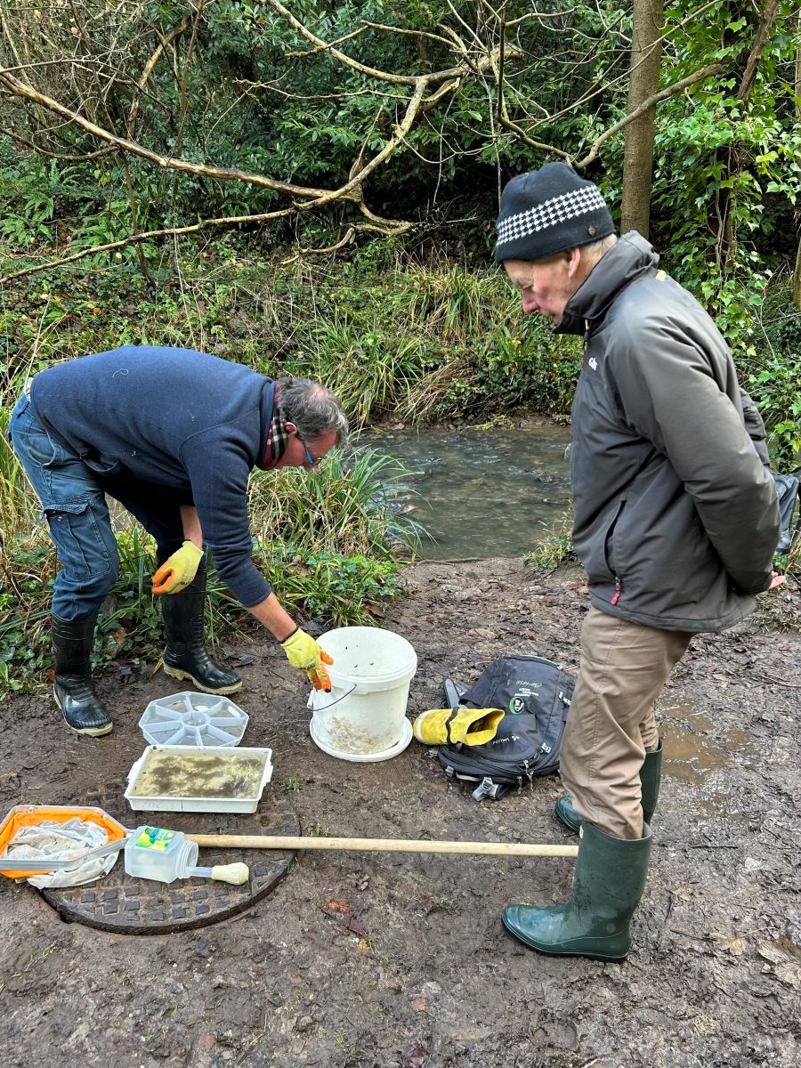 We had a good riverfly session yesterday in Blaise Castle Estate with Tim and Mike doing the last sample of the year. We found a caseless caddis (a rarity here), a number of olive nymphs and lots of freshwater shrimps which meant a score of 6 vs the site threshold of 3. The result was entered into the national database.